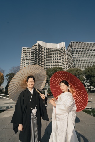 銀座の華やかな街並みは、モダンなビル群と老舗店舗が混在し、エレガントな雰囲気が漂います。銀座中央通りのイルミネーションや、和光の時計台前は特に夜の撮影にぴったりです。新橋の汐留エリアは、都会的な風景と近代的な建築が魅力で、スタイリッシュなフォトウェディングに最適です。