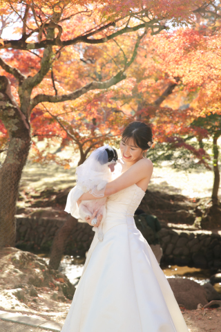 いつも傍にいてくれるペットだって立派な家族。結婚式では残念ながらお留守番だったので、せめてフォトウエディングは一緒にやりたい!いつもとは違う雰囲気を感じ取って、カメラの前でペットも思わずはしゃいじゃうかも?撮影前に必ずペットOKかをスタジオに確認して。
