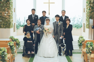 ファミリーフォトを誰と撮るかはもちろん自由!おじいちゃんおばあちゃんも呼んで三世代で、おめでた婚で授かった子どもと、または最愛のペットを連れて。挙式なしカップルにとっては、撮影を兼ねて家族に結婚を祝福してもらえる非日常の場を持てます。あふれる笑顔に囲まれて、とびっきりハッピーな瞬間の連続。家族みんなで分かち合いたい幸せなひとときです。