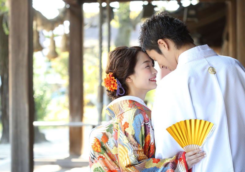 白無垢でも色打掛でもOK。スタジオだけでなく神殿でも撮影できるので前撮りや