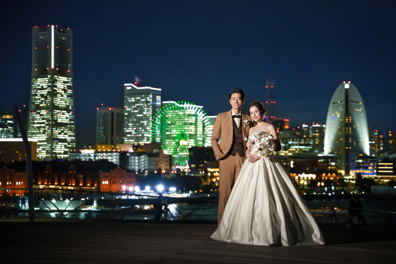 赤レンガ倉庫、メモリアルパーク、汽車道、象の鼻パーク、ドッグヤードガーデン、グランモール公園など、横浜らしい風景の中残す結婚写真。