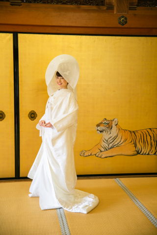 白無垢または色打掛のランクアップ料金なしで伝統工芸品の上質衣装から選び放題
