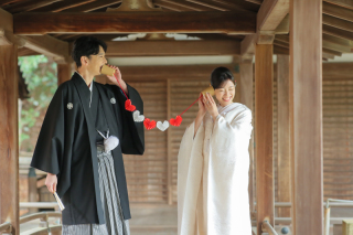 結婚式をするカップルは写真付きのウエルカムボードを作成したり、結婚式当日ではドレスのみ着用の場合には和装で撮影をするなど、バリエーションを楽しむのもおすすめ。
