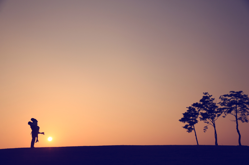 ウェディングフォトは新郎新婦の顔を映して当たり前だとは思っていませんか?ありきたりなフォト撮影に飽きてしまったら、遠方から撮影するシルエットフォトを選択してみましょう。ふたりのシルエットは幻想的かつ芸術的で、ふたりが愛し合っている様子が押しつけがましくなく伝わってきますね。丘の上や花畑などで撮影すると、自然の雄大さがよく伝わってきます。ボリュームのあるドレスを着ると、遠方からでも存在をアピールすることができますよ。