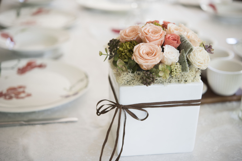 ブリザーブドフラワーは、花の美しい状態を長期間楽しめるアイテムです。両親の好きな花を使ったり、結婚式のテーマカラーに沿って作ったりと、様々なアレンジが可能です。
