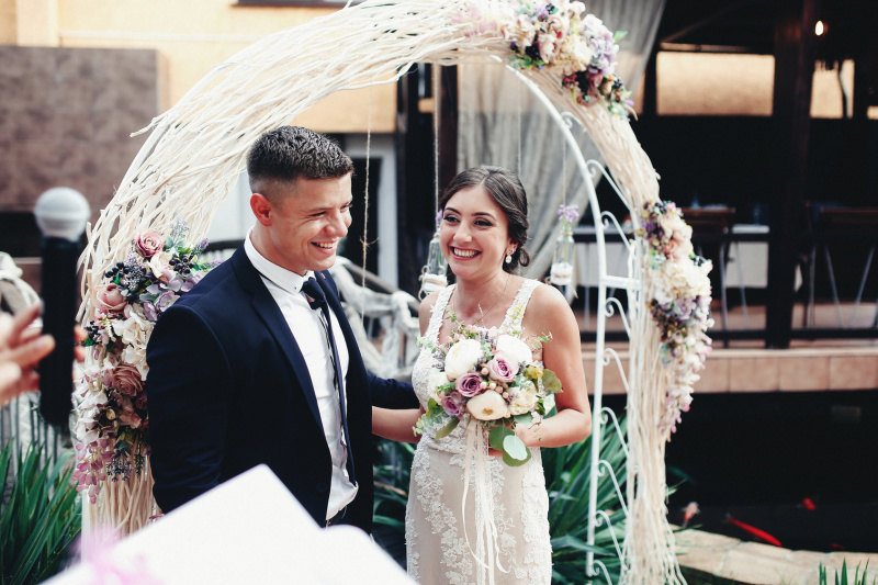 教会式や神前式とは違って、レストランやガーデンでカジュアルに行う人前式では誓いの言葉も工夫してユニークなテイストも取り入れたいところ。通常の「永遠に愛しあうことを誓います。」を「お互いの体型が変わっても愛し続けることを誓います。」などに変えるとユニークになって、笑いを誘うことができるでしょう。