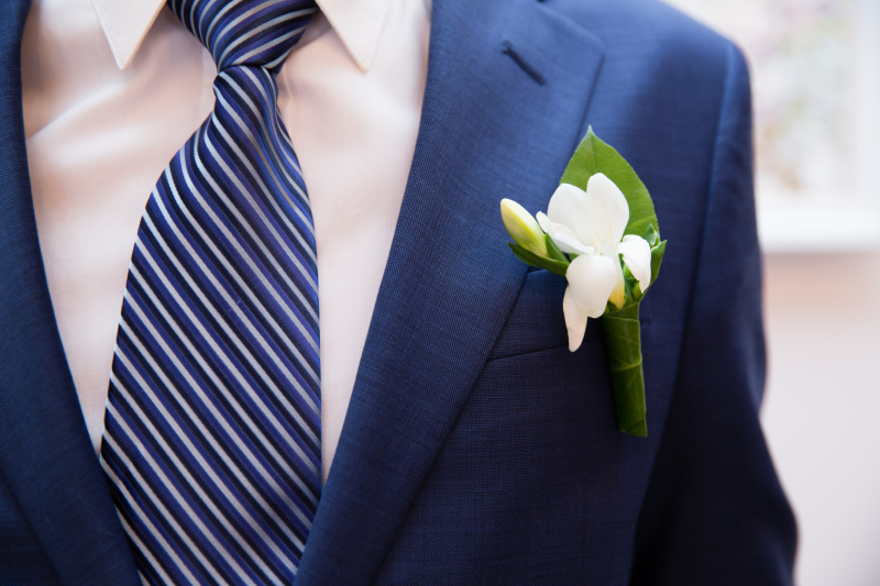 もし無地のネクタイを着用するのであれば、カラーネクタイを着用するのも良いでしょう。ピンクやブルーなどのパステルカラーは、爽やかなイメージで印象が良いです。若々しい印象にもなります。最近ではパステルカラーを選択する男性ゲストも増えてきました。