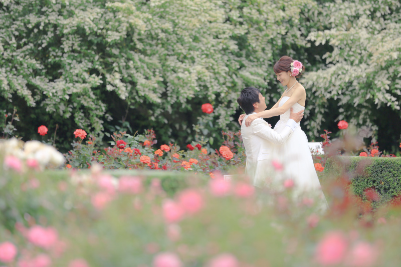 緑に囲まれたフォトウエディングがしたい!という方におすすめなのが名古屋市西区の庄内緑地公園です。広大な芝生のおかげで開放的な気分で撮影できます。春と秋にはバラも楽しめるので、洋装ウエディングにぴったりのスポットです。