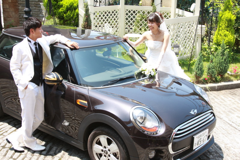 こちらは、ご自慢の愛車と一緒に映ったフォトウエディングポーズ。二人でドライブした時のことが鮮明に思い出せますね!車以外で二人がよく使っていたものを小道具として取り入れてみれば、より思い入れのある写真となります!