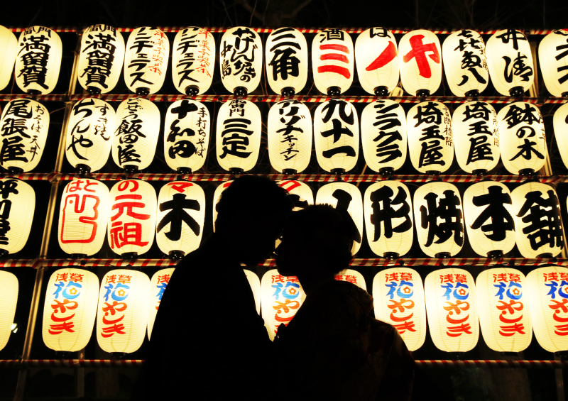 夜の仲見世通りは人通りも少なくり、撮影のタイミングにはぴったり。提灯の明かりを活かしてシルエット調に撮るのもいいですね。夜ならではのロケーションを活かして、幸せな二人のベストショットを残しましょう。