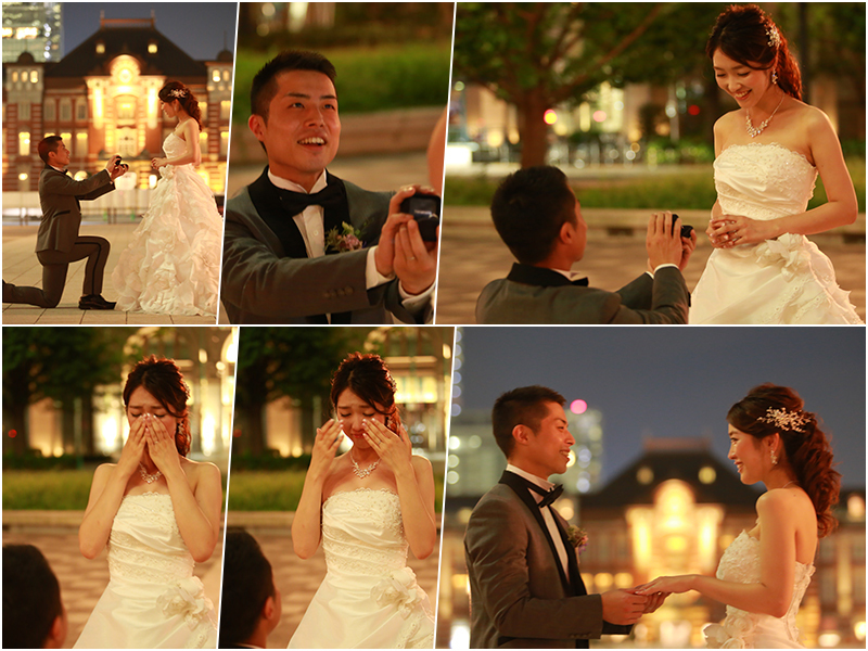 プロポーズするタイミングを逃してしまった方へ。膝を付いて心からの想いを伝えるドラマチックなシーン。想定外の驚きと感動いっぱいの表情が残せます!「クレールブライダルスタジオ」では、サプライズプロポーズにも協力的なので、お気軽に相談ください。