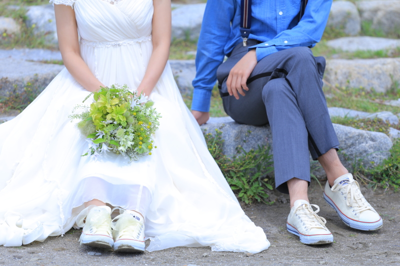 ウエディングドレスにスニーカーって、実はイマドキでお洒落な組み合わせ。ナチュラル&カジュアル派にはすっかり定番アイテムになりました。