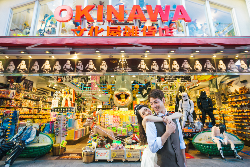 9枚目は、沖縄街中の「文化屋雑貨店」の前で♪