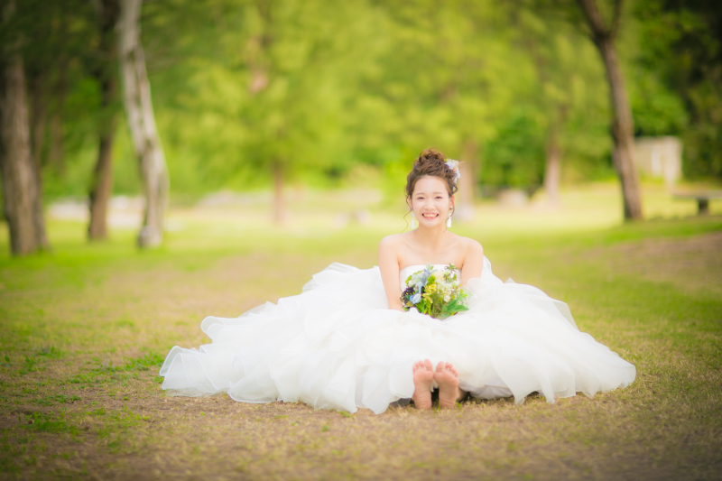 ドレスを広げて、ぺたんと座って。思い切って裸足で沖縄の自然を堪能してみては!