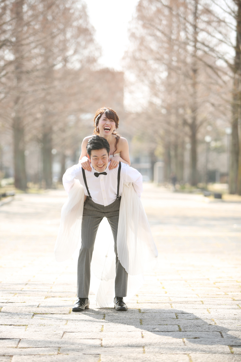 仲の良さが伝わるおんぶショット!普段はなかなか無いシチュエーションは前撮りならでは!