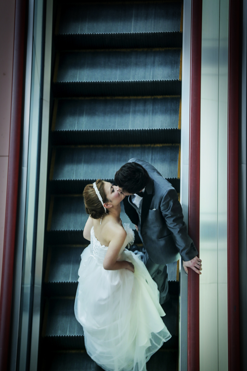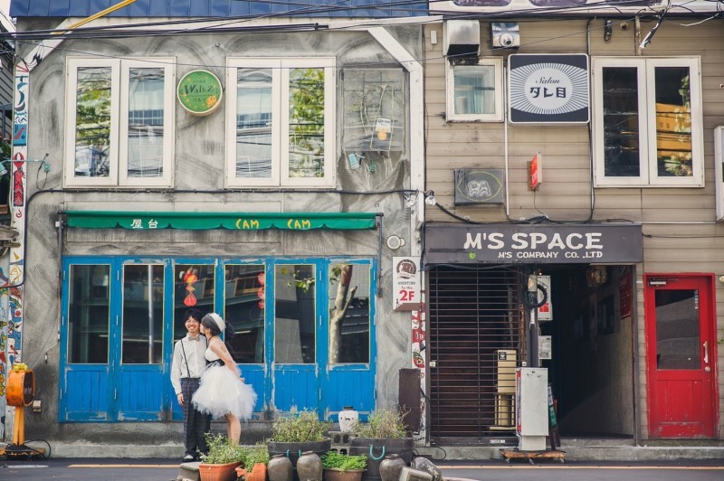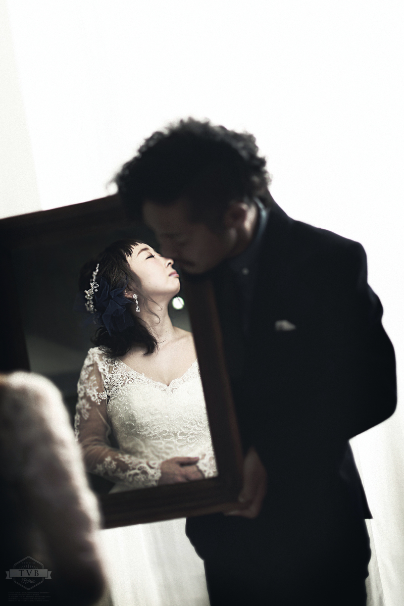 ガラスに偶然写り込んだふたりの姿をとらえ、雰囲気のあるショットに仕上げてくれる。