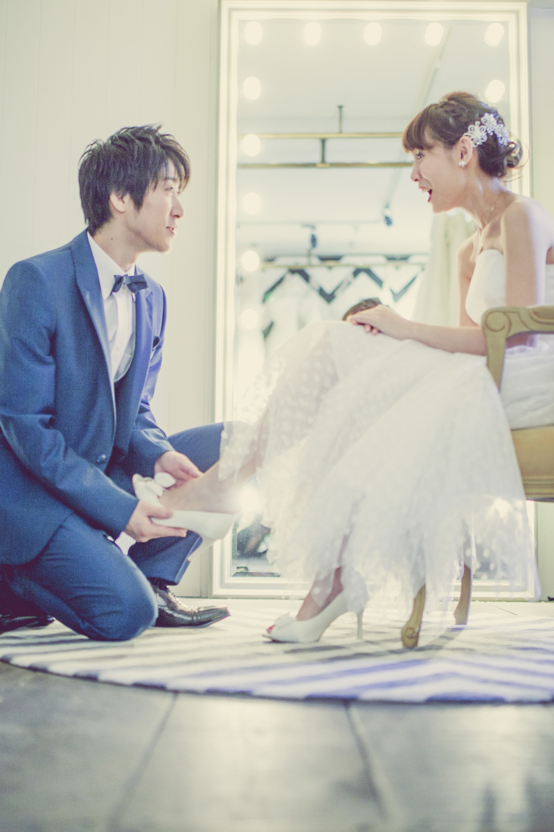 お支度の準備が出来たら最後の仕上げは新郎に靴を履かせてもらって!まるでシンデレラのようなシーンにうっとり♡