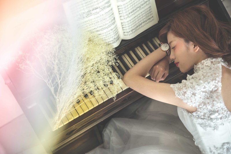 珍しいピアノ×フォトウエディングにも目が行くけれど、注目して欲しいのは時計!通常ドレス着用時には時計は外しますが、ペアウォッチをあえて付けて撮影してみては?