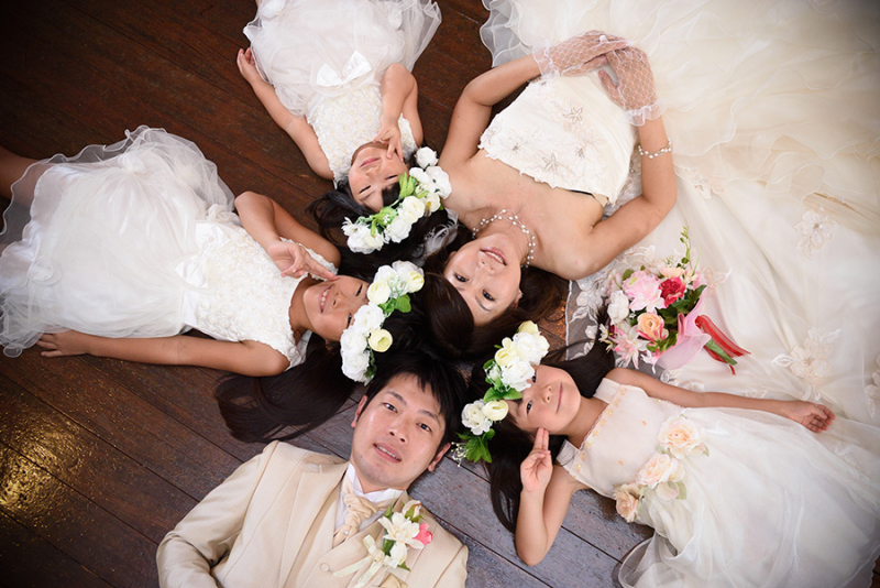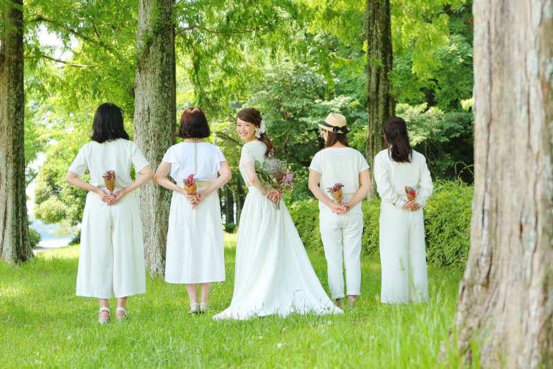 家族や友人と一緒に撮影もおすすめ。せっかくならお揃いの衣装で撮影してみませんか?ブライズメイドのような特別な衣装を用意しなくても同じ色で統一するだけでこんなにも爽やかな雰囲気に!