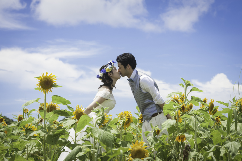 ひまわり畑の口づけシーン。より可愛くするには後ろで手を組んでみて!メルヘン度が急上昇!