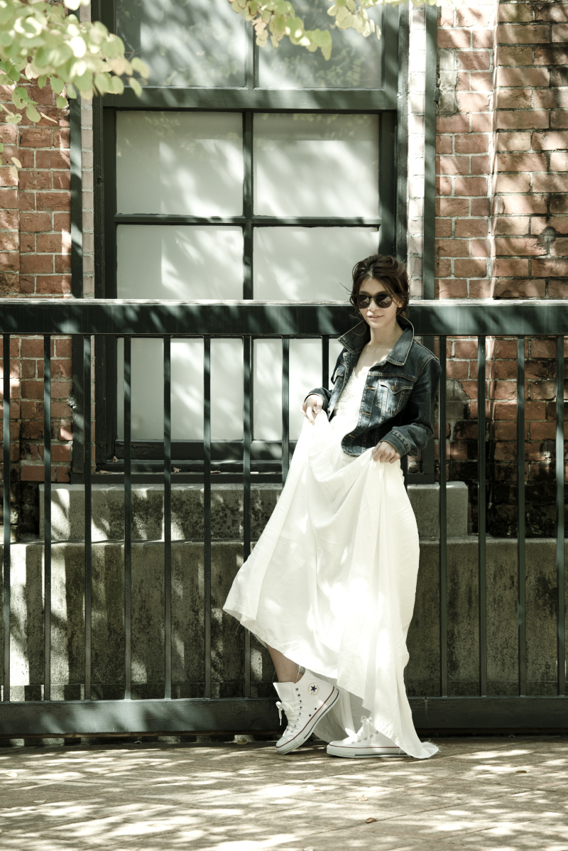 スニーカー、Gジャン、サングラス、どれもドレスとの組み合わせで定番となったアイテム。思い切って全部取り入れると…不思議とカッコいい花嫁に♡ポイントは髪型とポーズ。カッコいい花嫁を目指すならルーズスタイルもリクエストしてみて!