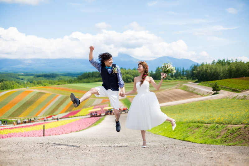 空気の美味しさまでも伝わってきそうなお花畑での撮影はいつもより陽気な気分に。思わずスキップをしてしまう足取り軽やかなこんな日にはジャンプだってしたくなる!