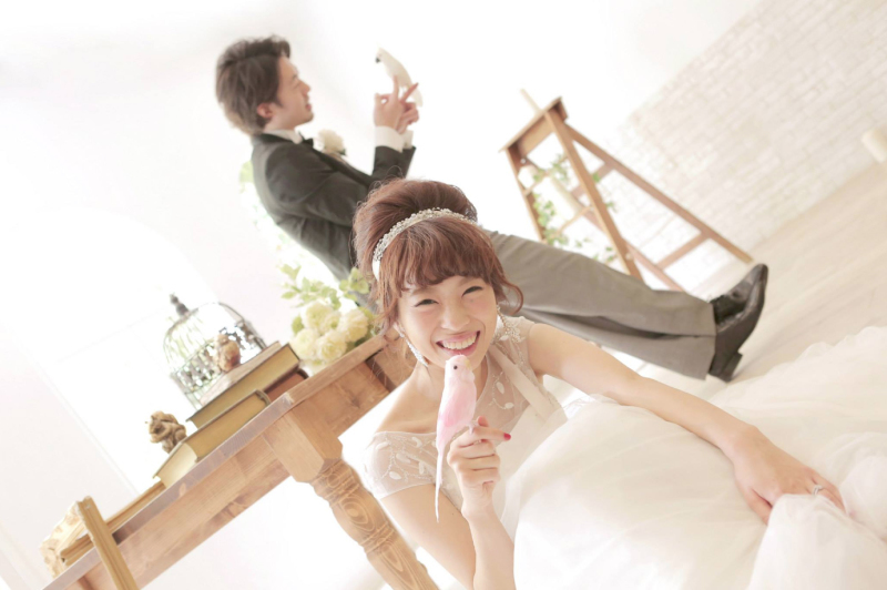 犬やネコの他にも小鳥、うさぎなど様々なペットと一緒に撮る前撮りはとても増えています。一緒に撮りたい場合にはスタジオに確認してみて!小鳥は指に乗せたり、ベットと見つめ合ったり…カワイイ表情が撮影できるはず!