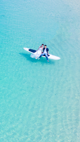 美しいエメラルドブルーの中に浮かぶお2人♡