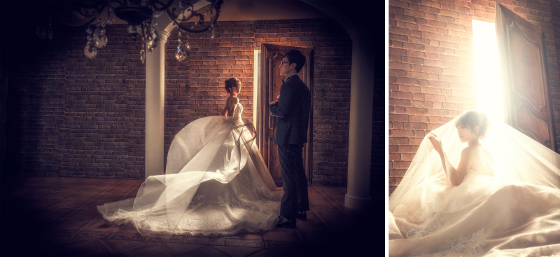 ふたりの姿を幻想的に照らし出すドラマチックな光。ひるがえるヴェールの裾までが美しい…。