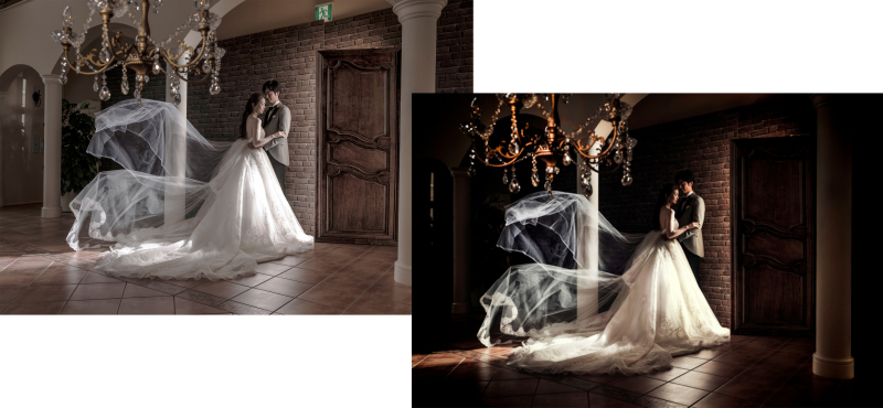 撮影した写真にはレタッチをかけ、被写体をベストな美しさにまでレベルアップ。スキのない非日常を作り出すために、写りこんだ余計なパーツを消すといったプロ技のレタッチも可。