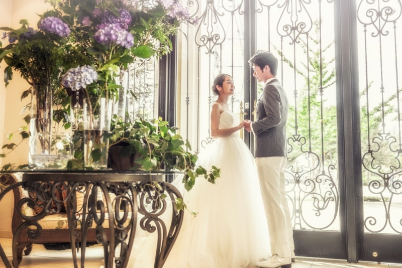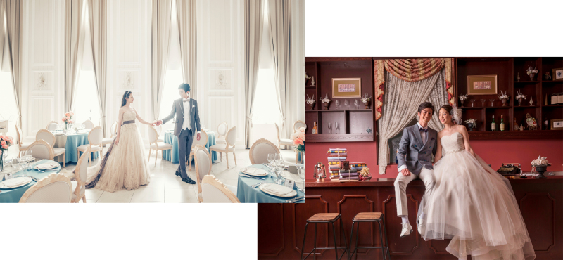 スペースの限られるスタジオでの撮影に比べると、醸し出す世界観、奥行きや天井高の生むスケール感、窓から見えるガーデン、ディテールまで凝った調度品など、実際の式場だからこその「本物感」はやはり別格。