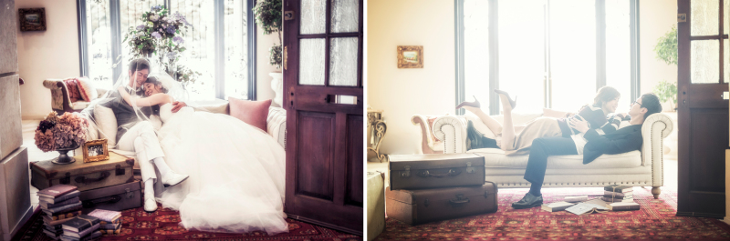 ラグジュアリーなソファで戯れるふたりの姿がおしゃれ可愛い!おすすめは私服で撮るナチュラルテイストのエンゲージメントフォト。