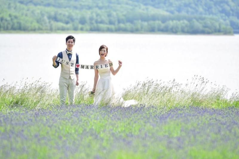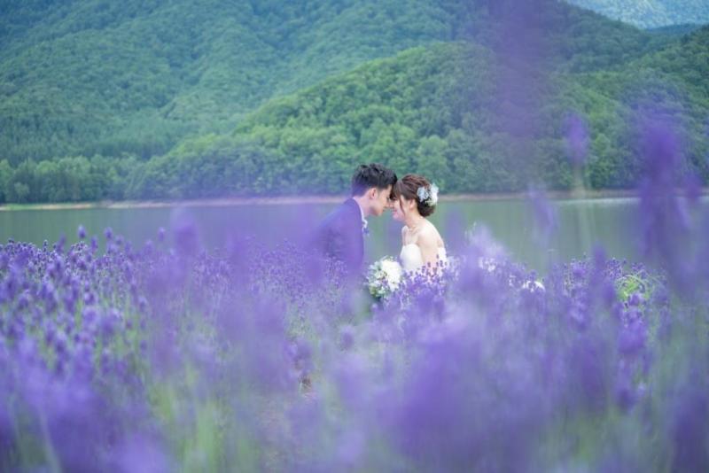 北海道のウエディングフォトで毎年予約が集中するのは、ラベンダー畑での撮影。