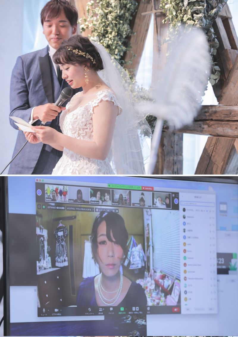 もともと今秋に結婚式は予定をされているおふたりでしたが、コロナの影響で海外にお住まいの新婦のご親族が出席が出来ず、大人数の披露宴も難しいため、当日参列が出来ないご親族やご友人のために「オンライン結婚式」を希望されていました。