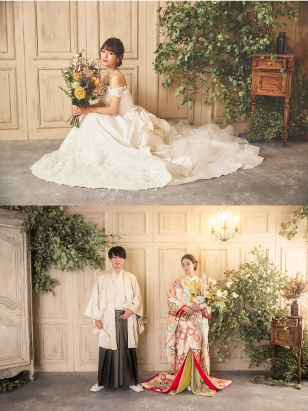 一度きりのフォトウエディングを楽しめるチャンスだから、衣装には徹底してこだわってOK!のちのち後悔することがないよう、和洋それぞれ、まったく別物の魅力をまとった写真を残しておきたい、という夢も思いきり叶えられます。
