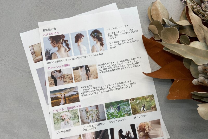 最低でも1ヶ月前から事前準備を始めると安心です。時間に余裕がない人でも、撮影指示書(依頼書)を用意しておくことで、撮影やヘアメイクをスムーズに進めることができます。文章で伝えにくい部分は、写真を使って詳しく説明し、撮影当日までにフォトグラファーやスタイリストと共有しましょう。