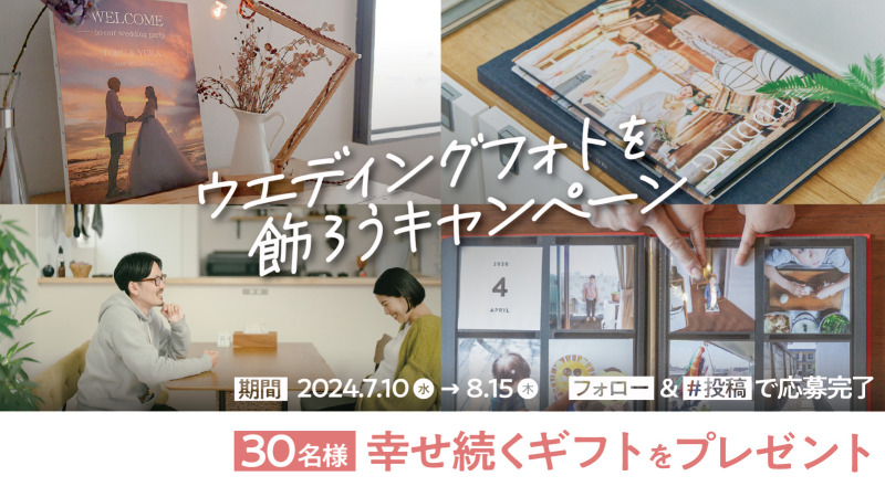 冒頭でもお伝えしたように、現在豪華プレゼントが30名様に当たる「ウエディングフォトを飾ろうキャンペーン」を2024年8月15日まで実施しております!
