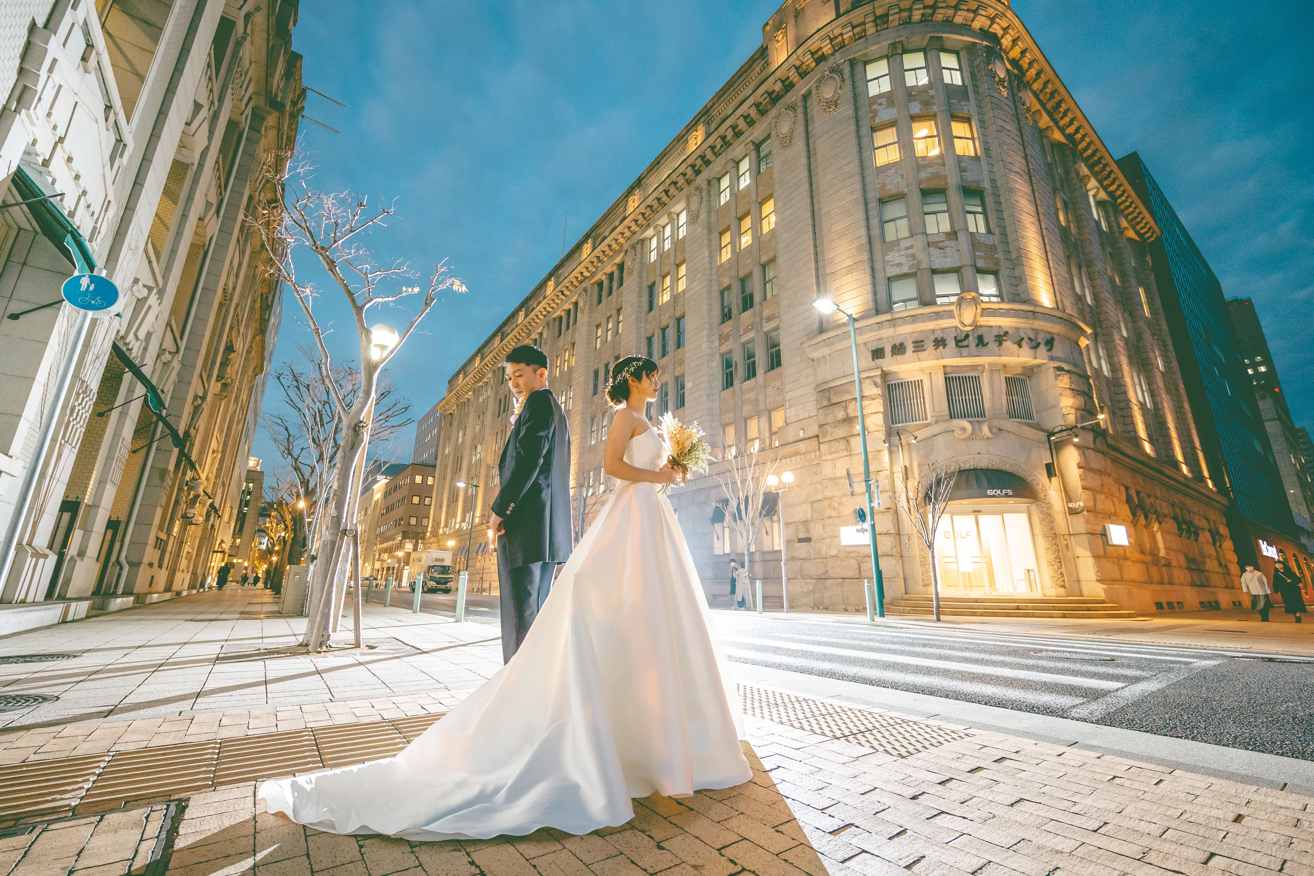 神戸旧居留地は、異国情緒漂う歴史的な洋風建築が立ち並ぶエリアで、クラシカルで洗練された雰囲気が特徴です。石畳の街並みや重厚な建物を背景に、エレガントで都会的なフォトウェディングが楽しめます。特にドレス姿やクラシックなスタイルにぴったりで、異国情緒あふれる一枚が撮影できます。
