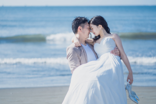「記憶を彩る」をコンセプトに、年間800組の撮影を行っているKANON wedding。都心からアクセスが良く、ビーチサイドのフォトスタジオから徒歩1分の場所で海撮影が可能です。海辺でのウェディングドレス撮影に加えて、海和装という新しい撮影も可能です!