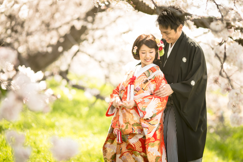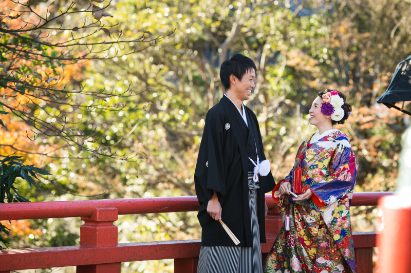 日本の美しい四季折々の景色を背景にすると、和装の花嫁姿が一層引き立ちます。春には新緑や桜、秋には紅葉と、日本には世界に誇れる情景がたくさんあります。それらの美しい背景にも負けない、華やかな和装の花嫁姿を結婚写真として残しましょう。後々、写真を見返した時、季節の情景とともに思い出がよみがえります。より印象深い結婚写真となりますね。