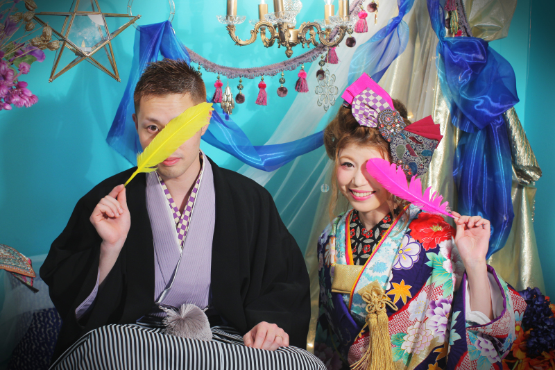 ▼現代的なデザインの和装で人と違う結婚写真が撮れる