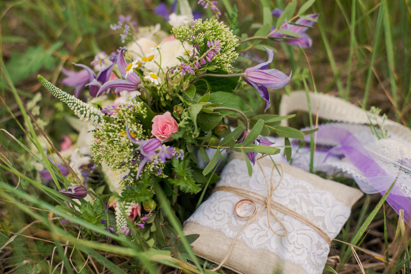 ガーデンウェディングには自然のテイストを取り入れたリングピローがオススメ。