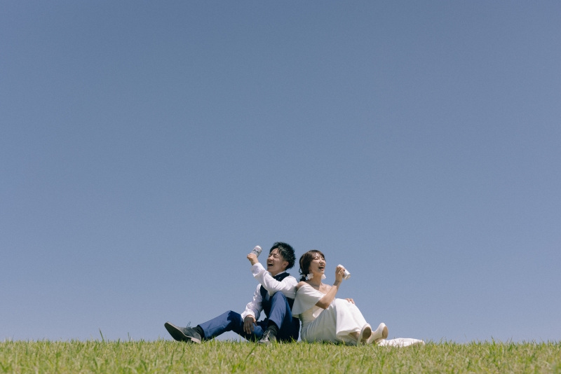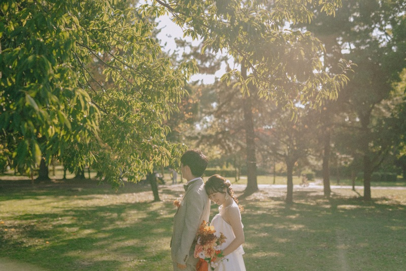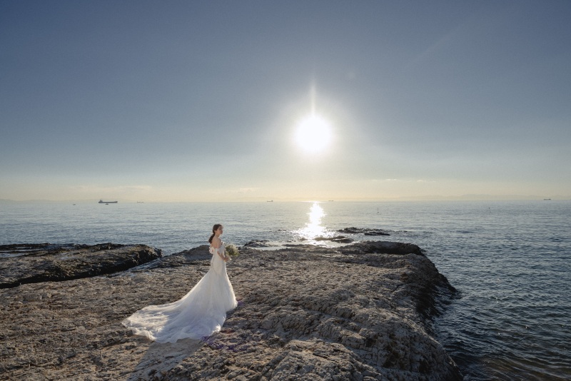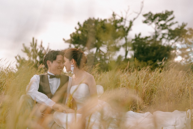 サンセットのタイミングはオレンジ色の光が優しく包み込みます。サンセット撮影だから叶えることができる一枚。