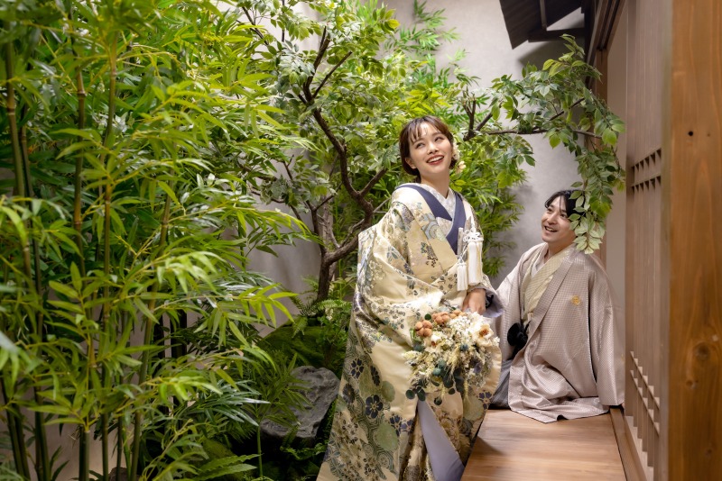 口コミ評価の高い人気スタジオでドレス&和装撮影が叶うお得なプラン♪ 自然溢れる屋内和装庭園&一番人気のスタジオでの撮影!