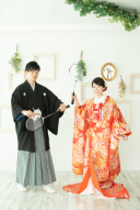 お着物の後ろの柄もみえ、シックでかっこいい一枚ですね!
