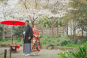 桜をバックに寄り添ってのお写真・・・お顔の距離感が近くて照れてしまいますね