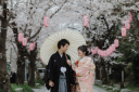 6月にご結婚式のお二人♡桜で前撮り撮影をされました 満開の桜が素敵ですね!