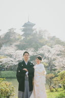 桜の時期の元町公園でご撮影をされたお二人日常のような、非日常のような一枚!