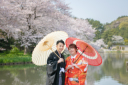 和装では三渓園で撮影♪桜が満開だったこの日は天気もよく撮影日和でした!