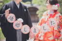まずはスタジオで和装撮影!挨拶風のお写真♪年賀状にぴったりですね!